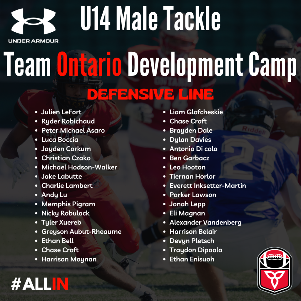 This is the second phase of the Team Ontario selection process and roadmap. To view the entire 2025 Team Ontario Tackle Road Map CLICK HERE.