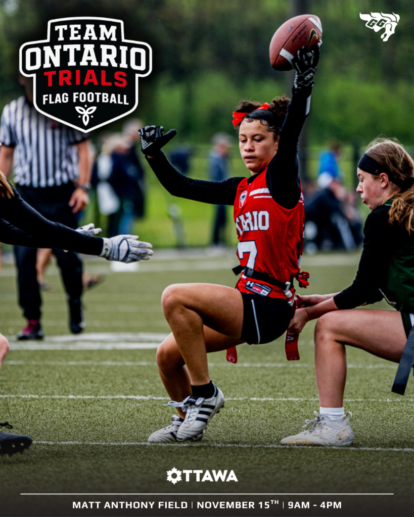 The Team Ontario Selection Trials will be taking place at the University of Ottawa on Saturday, November 15th from 9am-4pm and will feature the Top 30 athletes across 8 divisions (U14, U16, U18, and U19 Boys and Girls) competing for a final spot on the final roster for the Team Ontario Flag Program that will attend the Elite Flag National Championships in May of 2026.