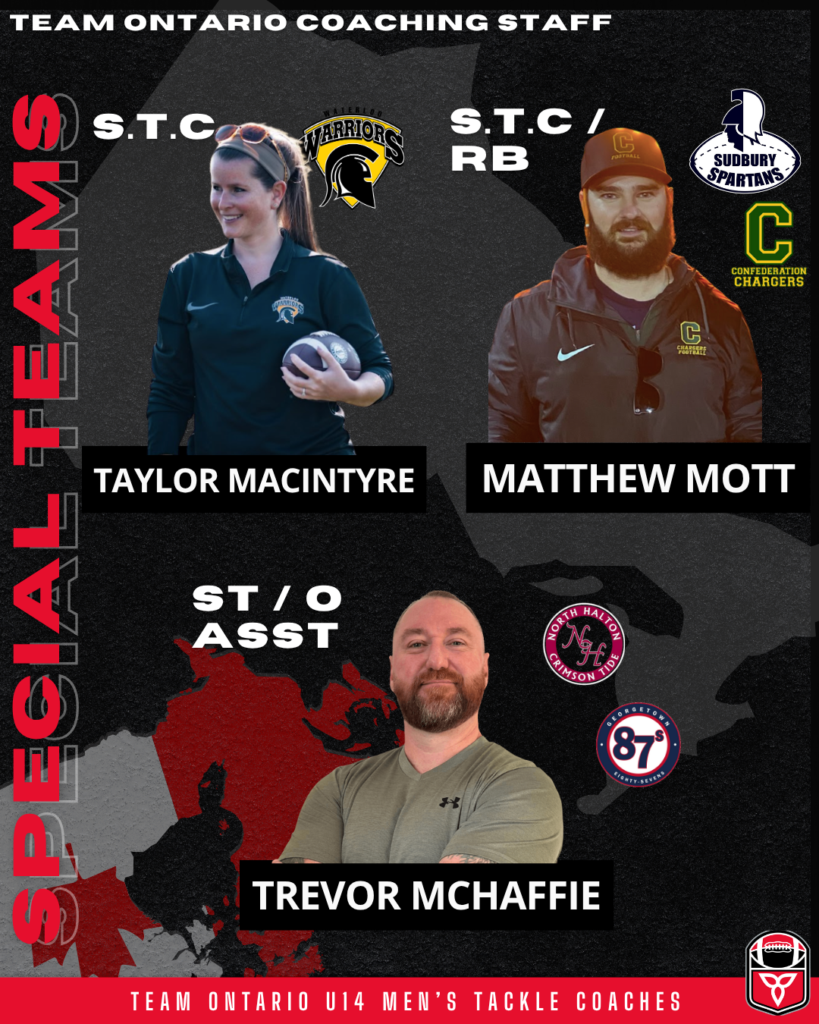 Hamilton, Ontario – Football Ontario has officially unveiled the 2025 Team Ontario coaching staff for the U14 Male Tackle Program.