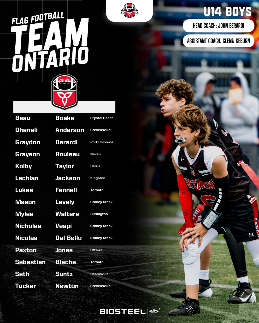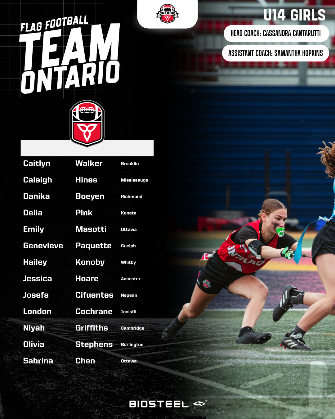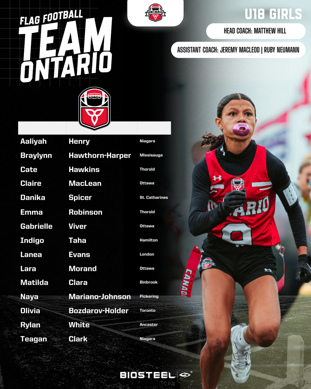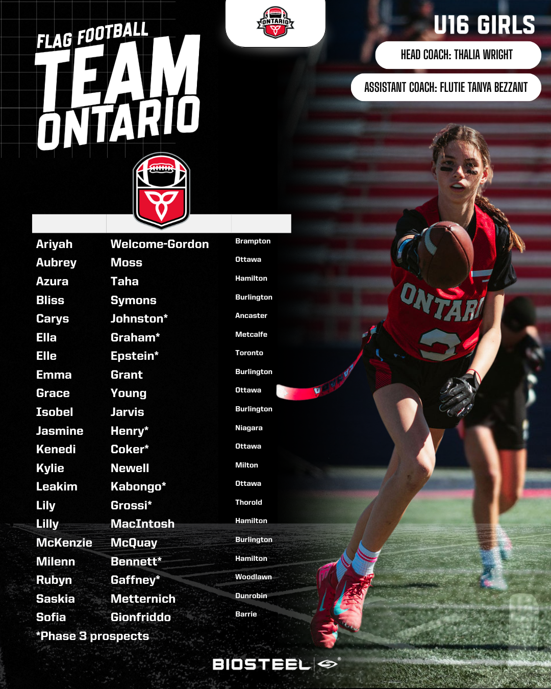 “We are building off of last year’s momentum with the goal of competing for gold, or at minimum, a podium finish in every division,” said Olivia Ghosh-Swaby, Manager of Flag Development. “We are already extremely proud of our U16 Boys team, who represented Canada at the Junior International Cup. That experience speaks to the talent within our program and the pathway we are continuing to develop for flag football athletes in Ontario.”