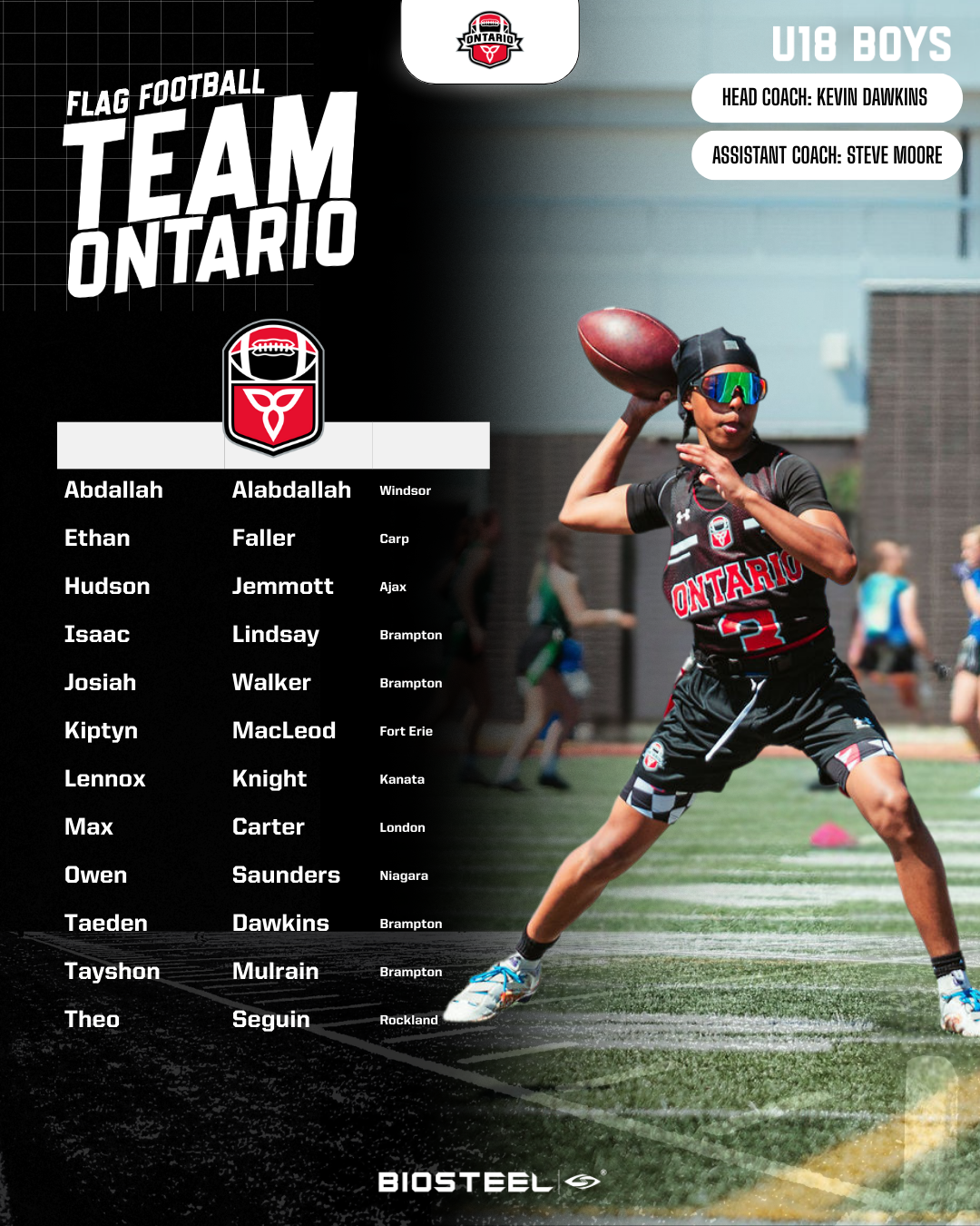 Athletes selected to the Team Ontario Flag Football program will make up the provincial teams, with coaching staffs finalizing both rostered athletes and alternates through the training camp process. Training camps will serve as a critical evaluation period, ensuring that each team is built with the strongest possible combination of skill, teamwork, and competitive readiness.