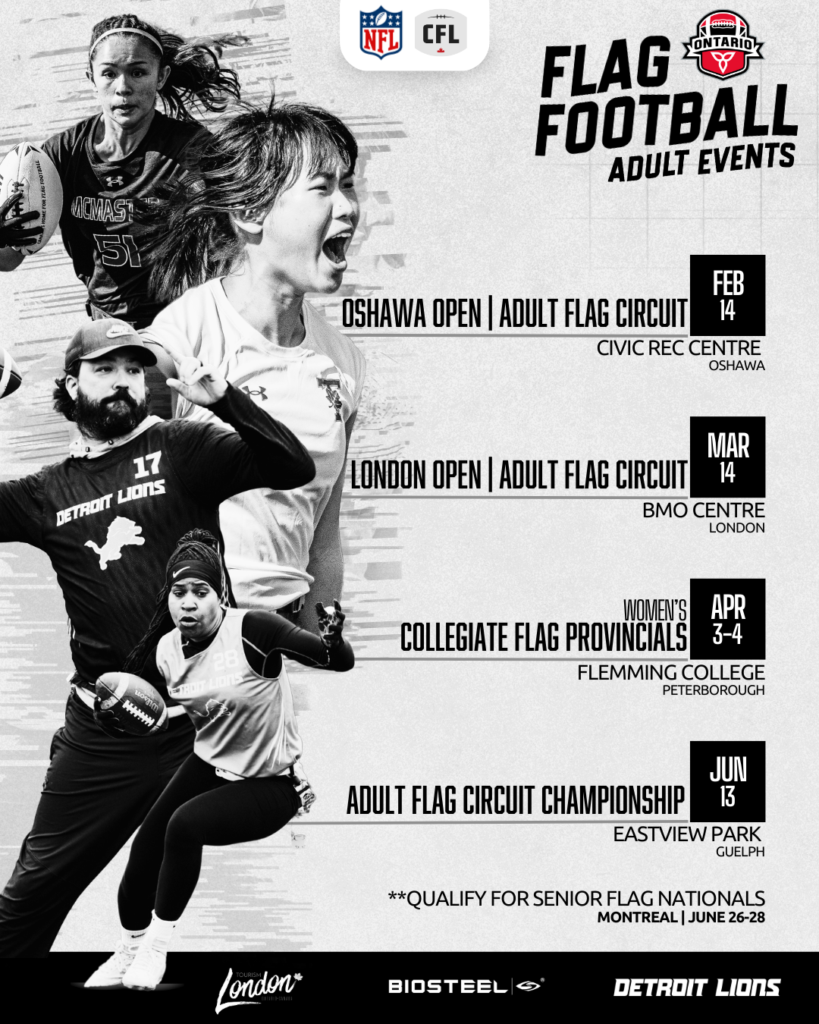“The continued growth of flag football across Ontario is something we are incredibly proud of as an organization. From high school and collegiate competition to club provincials and national championships, these events provide clear and meaningful pathways for athletes at every stage of their development. 2026 will be one of our most ambitious flag calendars to date, and we are excited to continue building high-quality championship experiences for athletes both in our province and across the country,” says Tyler McNicholl, Director of Operations with Football Ontario.